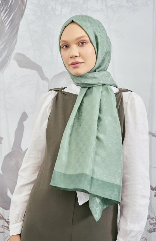 Armanda Dama Monogram Desenli Şal 3041-Keten Yeşili (3041)