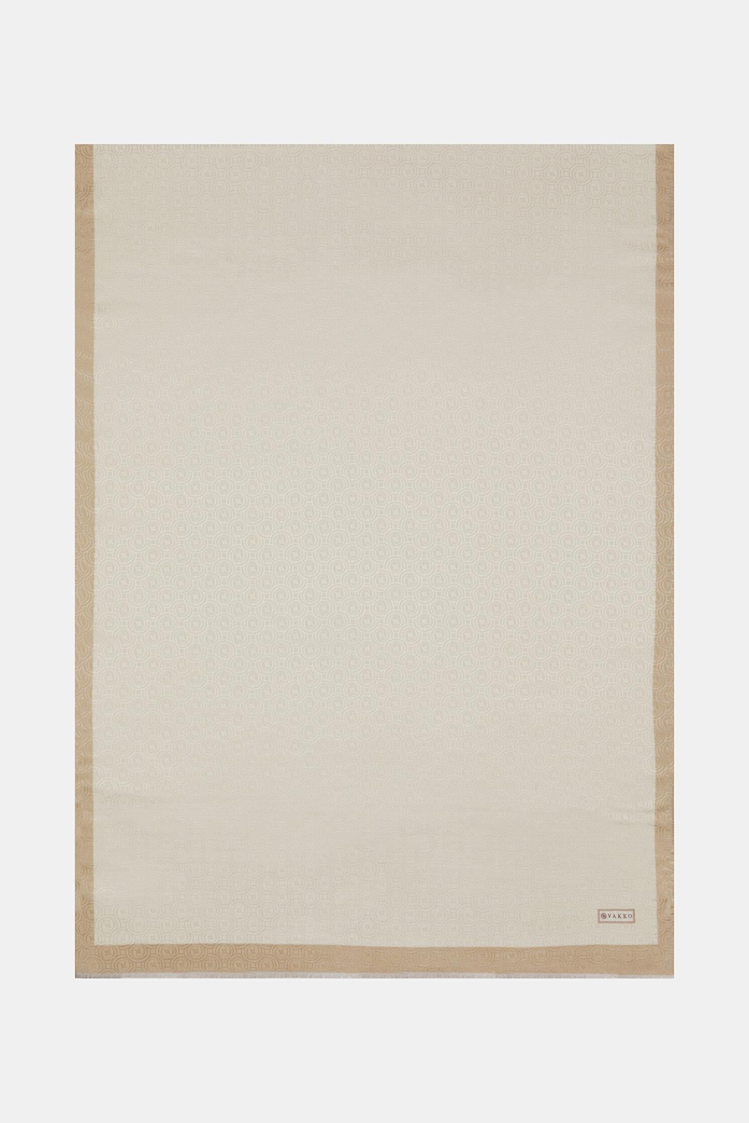 Vakko Pamuk İpek Şeritli Monogram Şal 41728-Ekru (41728)