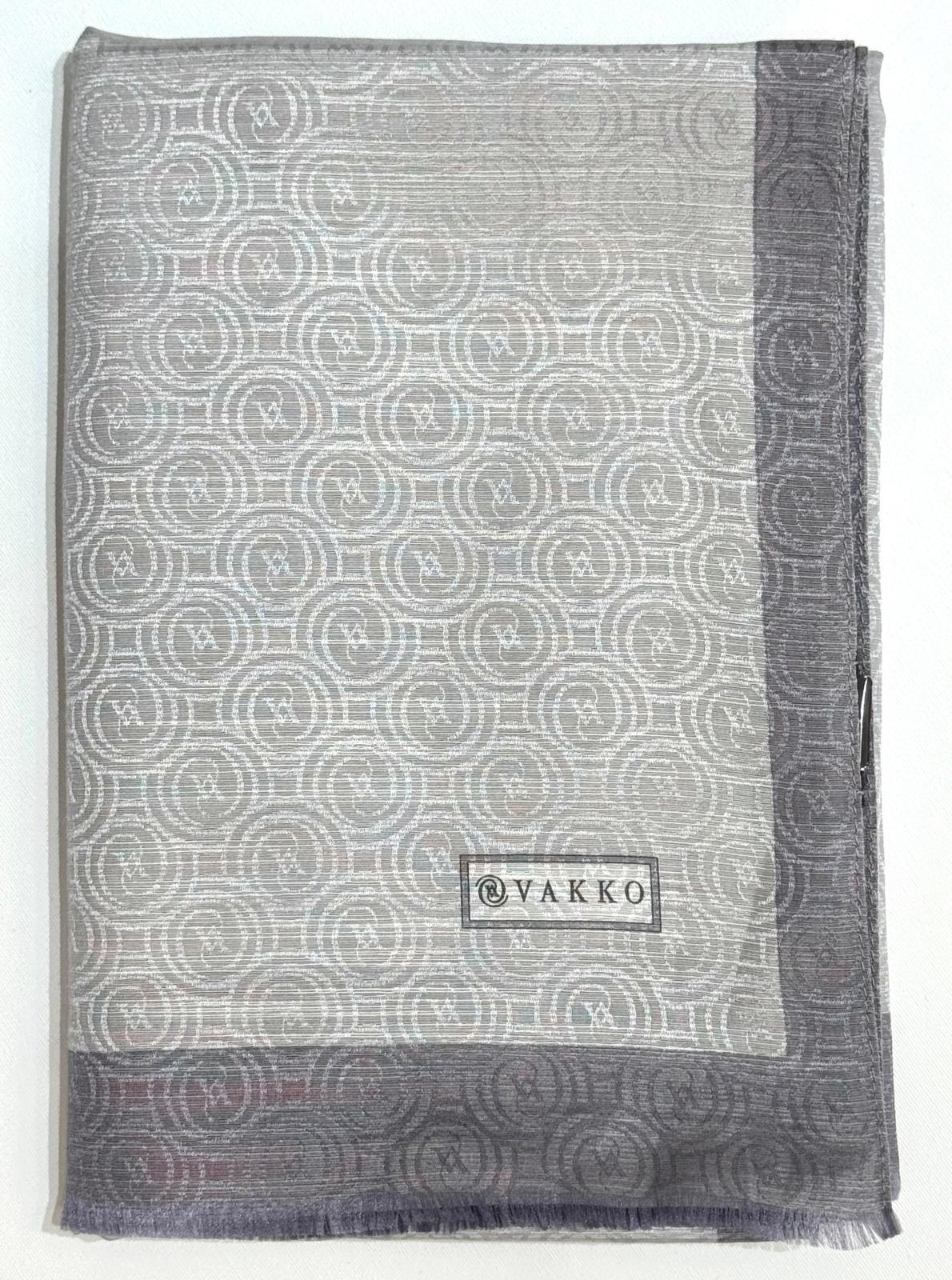 Vakko Pamuk İpek Şeritli Monogram Şal 41728-Gümüş (41728)