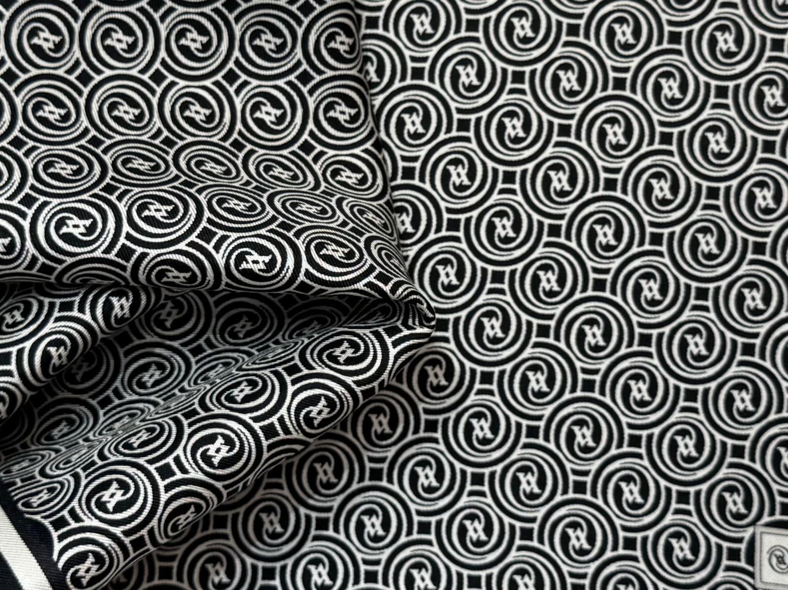 Vakko Tivil Monogram İpek Eşarp 41408-Siyah Ekru (41408)
